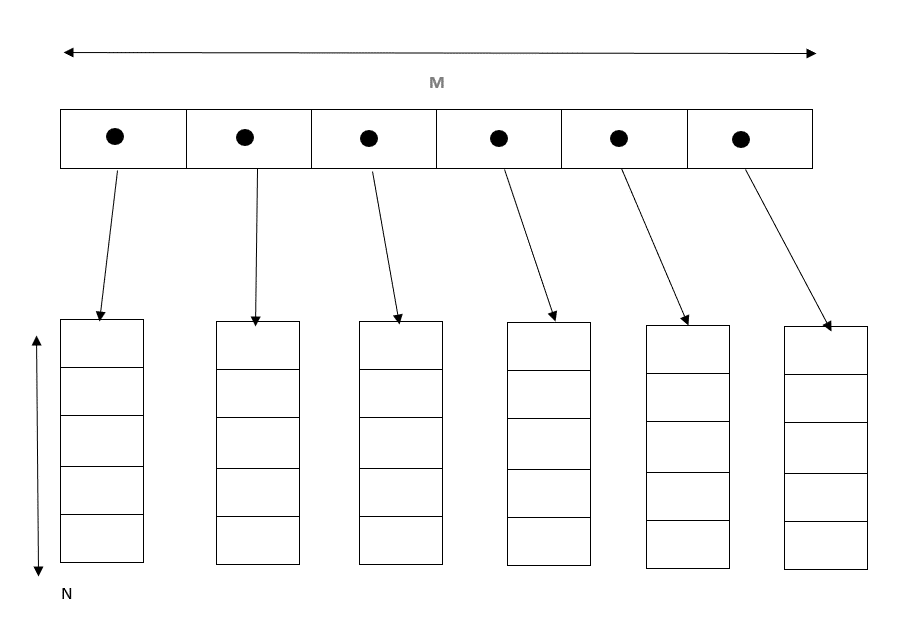 // creating an array of pointers of size M dynamically using pointers