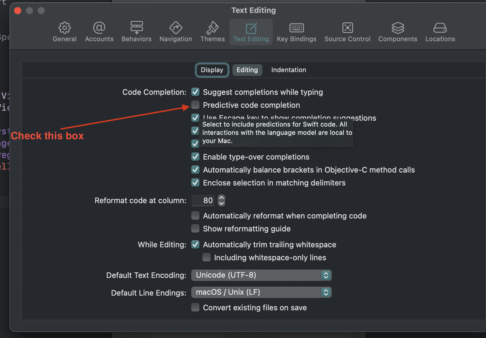 How to download Predictive Code Completion Model in Xcode