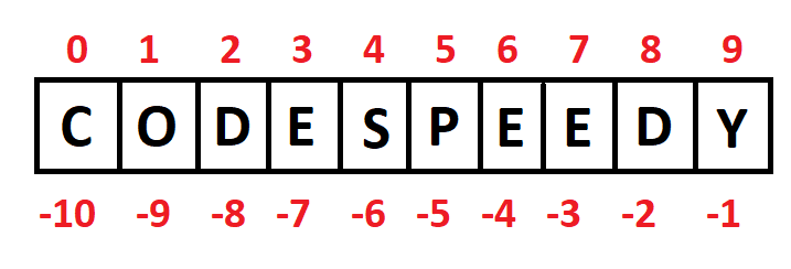 In python, the string indexing starts from zero. The strings can also have negative indexing from the end just like the lists. The below picture shows both the negative and positive indexing of a string.