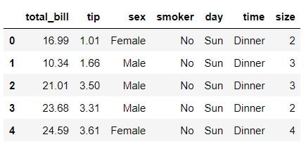 Now, the very first step is to load dataset ‘tips’ from seaborn. For this, you need to do is-