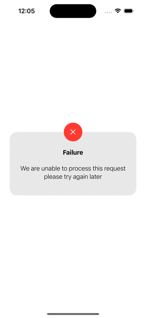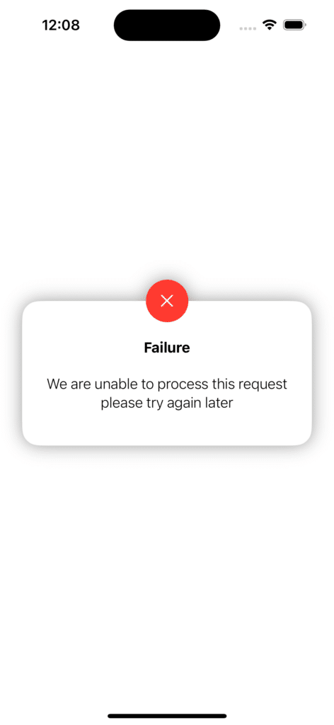 import SwiftUI struct CompositionGroup: View { @State private var rotateShapes = false var body: some View { ZStack{ Rectangle() .fill(Color.gray.opacity(0.2)) .frame(maxWidth: .infinity) .frame(height: 170) .cornerRadius(20, antialiased: /*@START_MENU_TOKEN@*/true/*@END_MENU_TOKEN@*/) .padding(10) Image(systemName: "multiply") .frame(width:50, height: 50) .background(Color.red) .foregroundColor(.white) .imageScale(.large) .aspectRatio(contentMode: .fill) .cornerRadius(25) .offset(y:-85) VStack{ Text("Failure").fontWeight(.bold).padding(.bottom) Text("We are unable to process this request please try again later") .padding(.bottom) .fontWeight(.light).multilineTextAlignment(.center) }.padding([.top,.leading,.trailing], 20) } .padding() } }