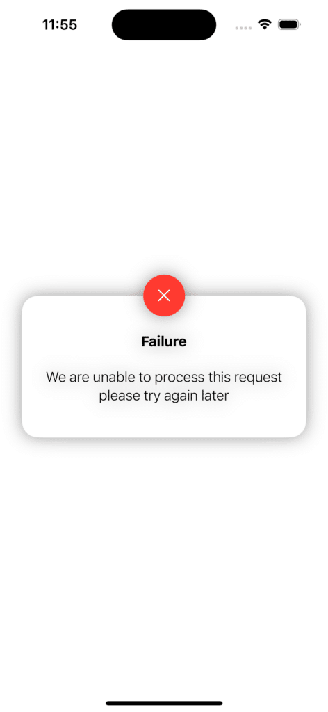 struct CompositionGroup: View { @State private var rotateShapes = false var body: some View { ZStack{ Rectangle() .fill(Color.white) .frame(maxWidth: .infinity) .frame(height: 170) .cornerRadius(20, antialiased: /*@START_MENU_TOKEN@*/true/*@END_MENU_TOKEN@*/) .padding(10) Image(systemName: "multiply") .frame(width:50, height: 50) .background(Color.red) .foregroundColor(.white) .imageScale(.large) .aspectRatio(contentMode: .fill) .cornerRadius(25) .offset(y:-85) VStack{ Text("Failure").fontWeight(.bold).padding(.bottom) Text("We are unable to process this request please try again later") .padding(.bottom) .fontWeight(.light).multilineTextAlignment(.center) }.padding([.top,.leading,.trailing], 20) } .shadow(color: Color.black.opacity(0.4), radius: 10) .padding() } }